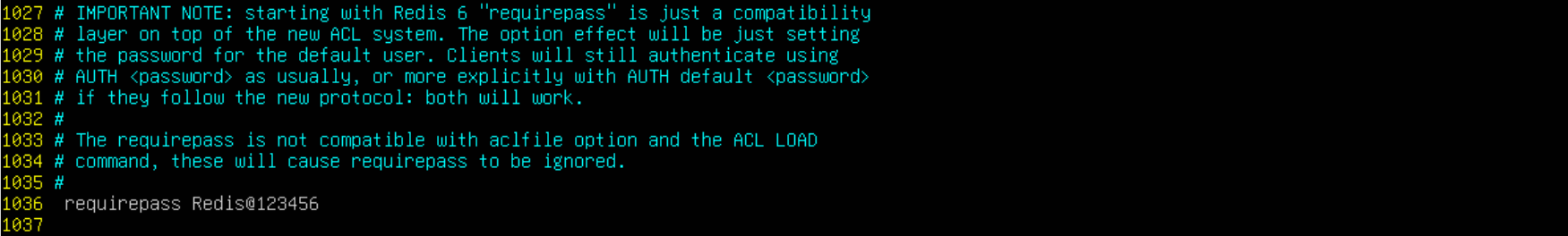 requirepass Redis@123456 #大约在1000行左右(SECURITY区域)