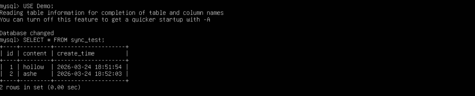 SELECT * FROM sync_test;同步成功。