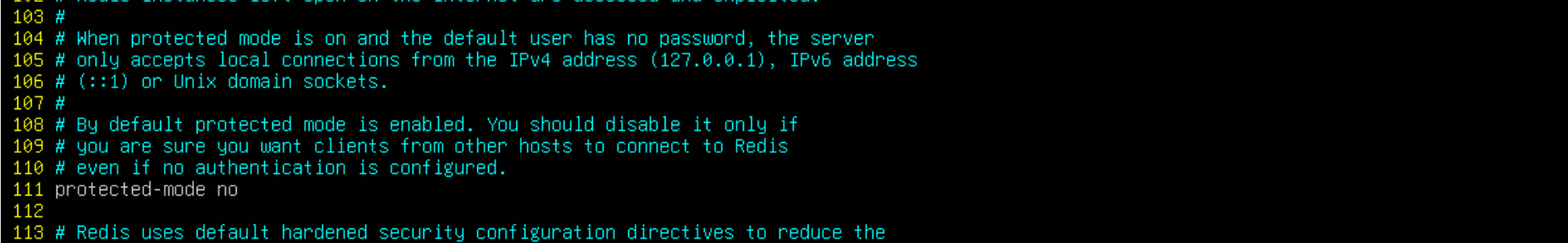 protected-mode no #大约在100行左右(NETWORK区域)