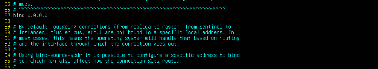bind 0.0.0.0 #大概在80行左右(NETWORK区域)
