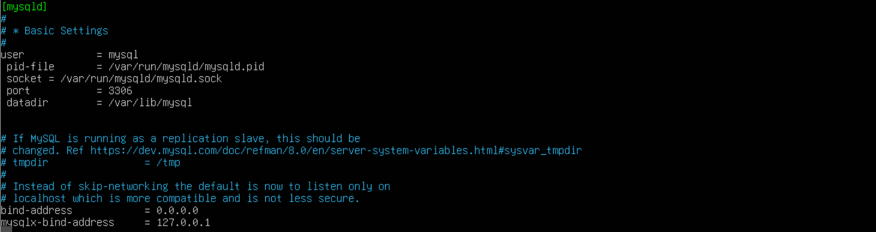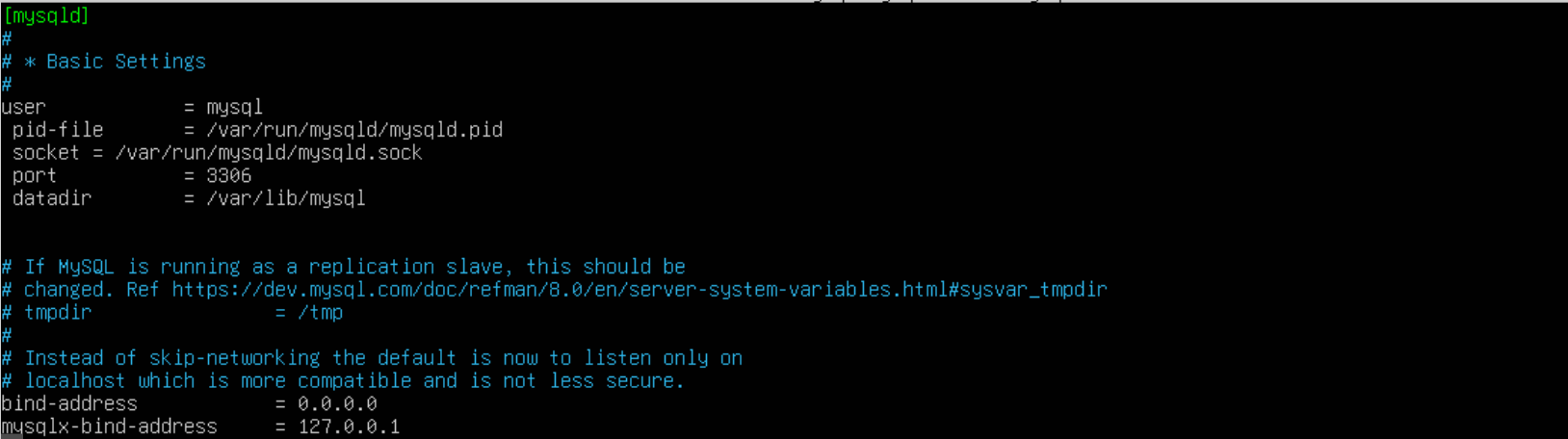 sudo nano /etc/mysql/mysql.conf.d/mysqld.cnf[mysqld]