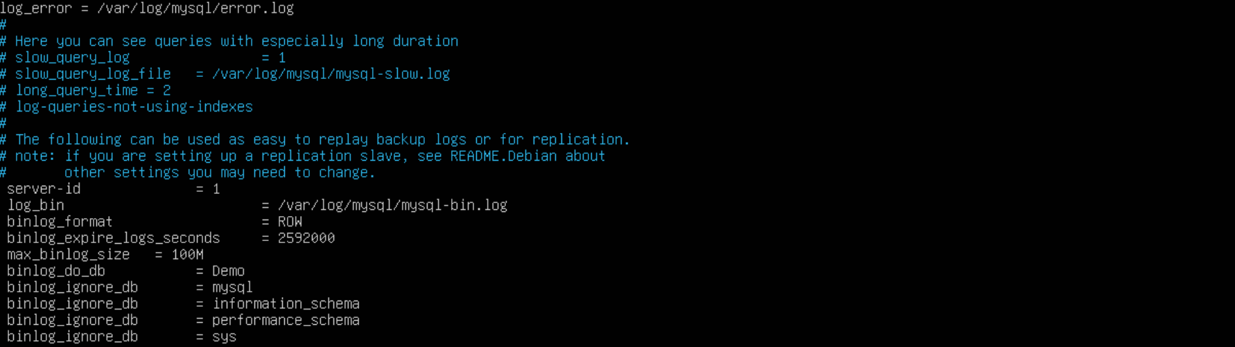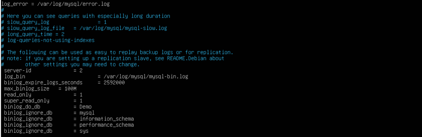 log_bin = /var/log/mysql/mysql-bin.log # 开启binlog(记录数据变更)