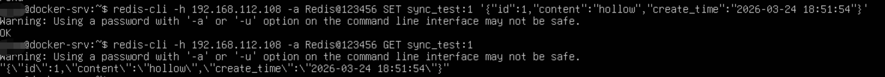 redis-cli -h 192.168.112.108 -a Redis@123456 SET sync_test:1 '{"id":1,"content":"hollow","create_time":"2026-03-24 18:51:54"}'