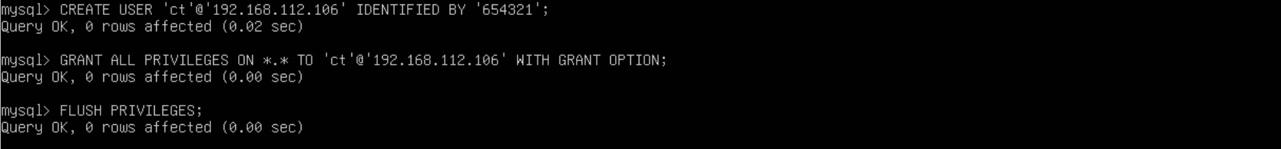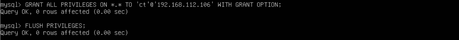 GRANT ALL PRIVILEGES ON *.* TO 'ct'@'192.168.112.106' WITH GRANT OPTION;
