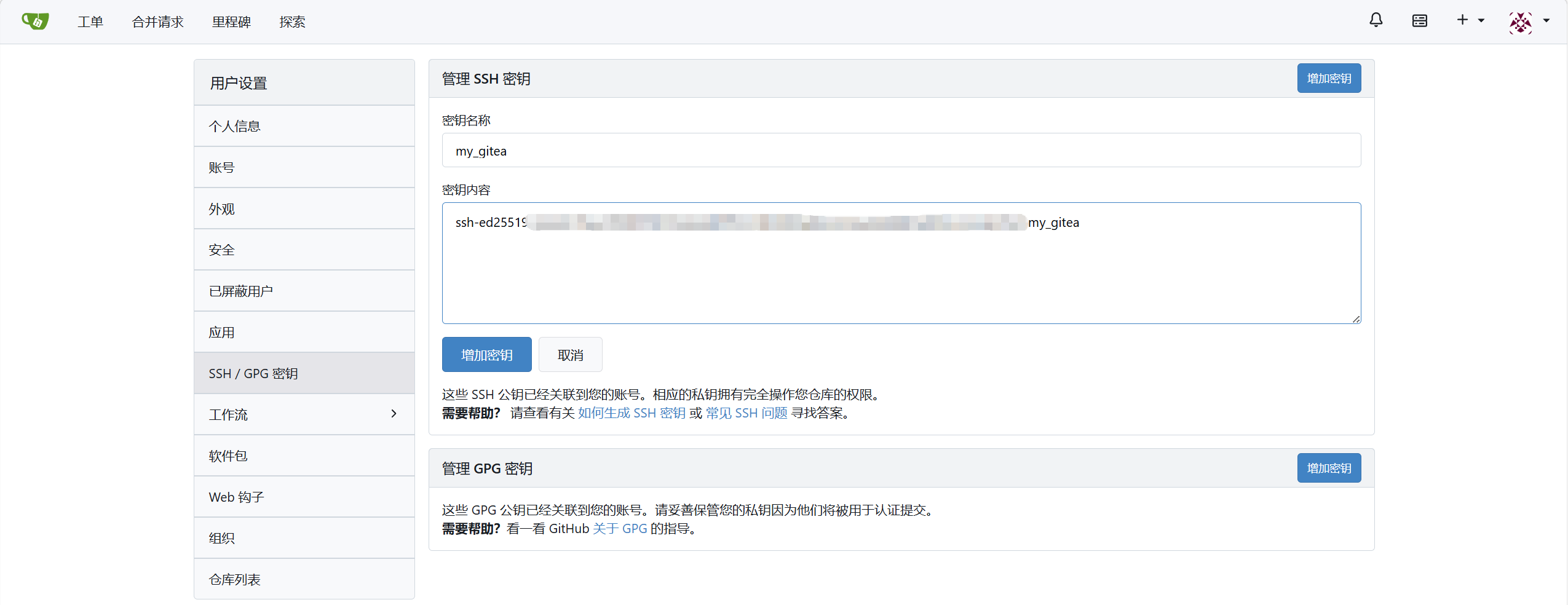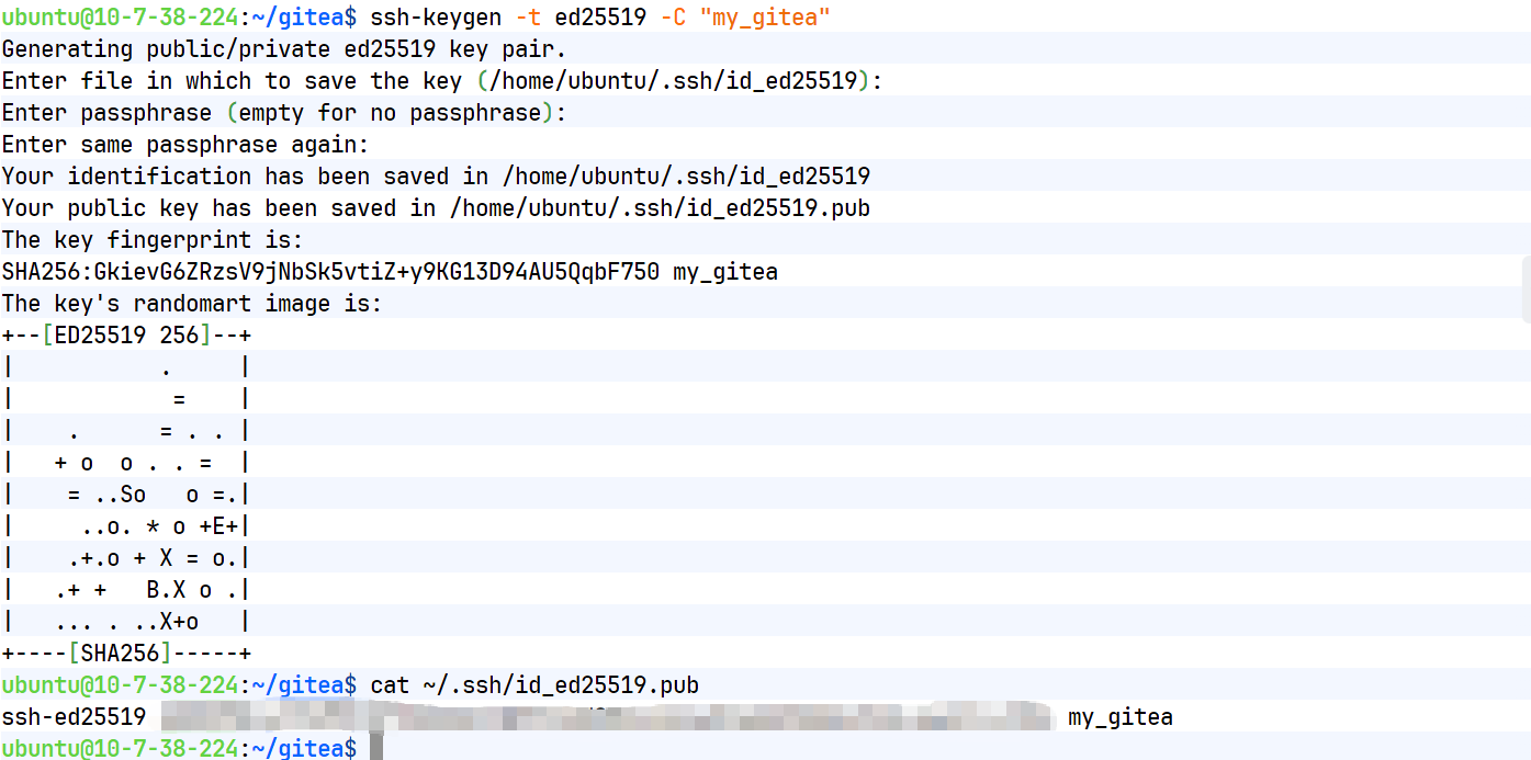 ssh-keygen -t ed25519 -C "my_gitea" #本地生成ssh密钥