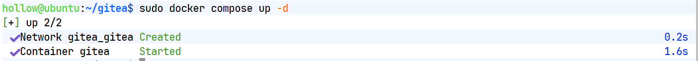 sudo usermod -aG docker $USER #执行后务必关闭终端,重启新终端,否则容易报错。部署 Gitea