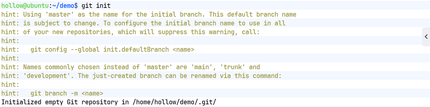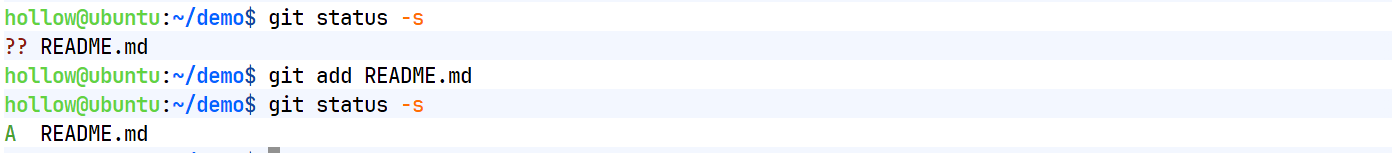 nano demo/README.md 创建文本文件3. 打开命令行/终端,依次执行 Git 初始化、添加文件、提交配置: