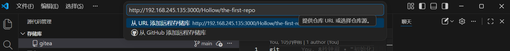 4.将本地仓库与你刚搭建的 Gitea 仓库关联(复制 Gitea 提供的仓库地址):