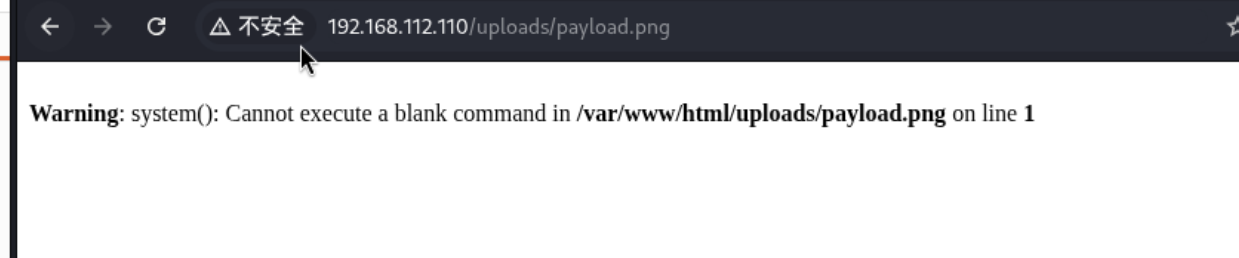 http://192.168.112.110/uploads/payload.png发现上传成功,报错原因是system没有给到参数