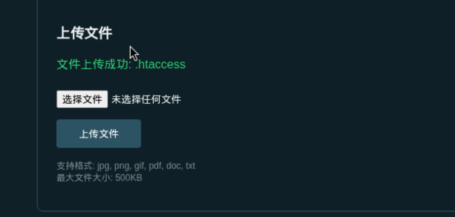 因为之前信息收集知道该服务是Apache,并且文件目录扫描发现许多.htaccess前缀的文件,所以我们选择上传.htaccess文件来覆盖服务器配置